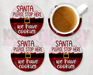 Neoprene Table Coasters - Xmas - Santa Please Stop Here...